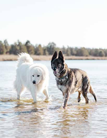 Jasper (l) and Aston (r) enjoy some time in the water on a recent pack hike.
