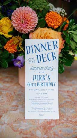 Months of planning all the little details of Dirk’s party found Westcott happier than ever—planning the dinner menu with the chefs of (small batch), considering florals with Occasions with Symone Shaw, deciding to use mismatched family napkins, and crafting invitations with Key Circle Press. From the welcome watermelon margaritas to the parting gift of Honeycreeper chocolates, the party was a labor of love.