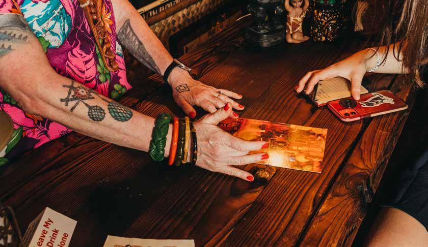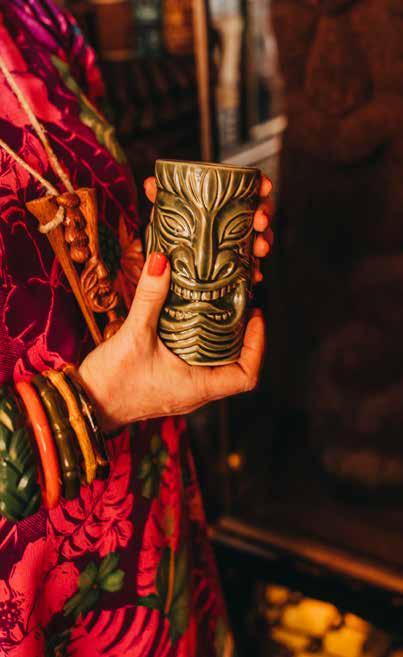 White, whose insider name is Tiki Kiliki, first encountered Tiki culture as a child in Anniston, Alabama. “When I was a little girl, my mother could not afford daycare, so I went to an antique store,” she says. White and her sister spent afternoons at Dishman’s Antiques while her mother finished work. Mrs. Dishman’s collection of Hawaiian records enthralled White and became her escape. “I literally ran to the school bus because I knew it was taking me to paradise.”