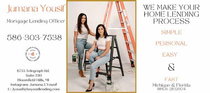 $89 New Patient Welcome Package Available to patients without dental insurance and includes the following: Achieve that Perfect Smile Diagnostic X-Rays Shows the areas in between your teeth, which are the most highly susceptible to decay. The number of x-rays we take is patient-specific. Comprehensive Exam We utilize an intra-oral camera & discuss a treatment plan based on your dental wants and needs. Personalized Treatment Plan Addresses any clinical treatments needed, which we will print and review with you. Payment Plan Options Includes 12-month special financing with approved credit, insurance coverage and methods of payment. Professional Teeth Cleaning completed by one of our friendly hygienists. 248.642.3800 birminghamfamilydentistry.com 16231 West 14 Mile Road, Bingham Farms, MI Join Our Family Click or Call Today! Invisalign® $1,000 OFF Expires 6.30.2023. Conditions apply. Amarilda (Amy) Vucaj is meticulous about quality work and passionate about design, she will help you create beautiful spaces for beautiful living. 248.792.2720 | Amareaux.com 725 S. Adams Rd., Birmingham, MI 48009 Contact Amy for Your FREE One-Hour Consultation! 45 | CITYLIFESTYLE.COM/BIRMINGHAMMI MAY 2023