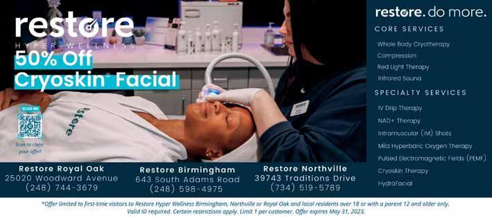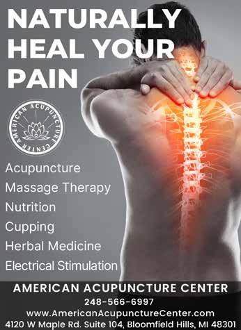 At RenU Acupuncture we offer personalized, compassionate and holistic treatments for our clients. Our goal is to enhance healing, performance and relaxation while reducing pain and inflammation. We offer several treatments that can improve your wellbeing and overall health. GRAND OPENING SPECIAL Buy 1 Full Treatment–Get Your 2nd treatment FREE within a Week! 248.800.2222 | RENUACUPUNCTURE.COM | 189 TOWNSEND ST, SUITE 302 • BIRMINGHAM, MI 48009 Additional Discounts Available for: Police & Fire Departments • Senior Citizens • Military Veterans Teacher’s Union Members • Active Duty Service Members VALENTINA ANIKEYEVA, L.AC. FOUNDER & OWNER Acupuncture • Cupping Massage • Shockwave Therapy CBD & Aromatherapy Treatments • More Award-Winning Criminal Defense & Litigation Attorneys Small Firm Attention, Big Firm Results 248.470.4300 | Georgelaw.com 444 South Washington Ave. Royal Oak, MI 48067 CRIMINAL DEFENSE & CIVIL LITIGATION SCHEDULE A FREE CONSULTATION Over 200 5-Star Client Reviews! PERSONAL TRAINING · SEMI-PRIVATE TRAINING ACCOUNTABILITY · COMMUNITY chelsea baugher