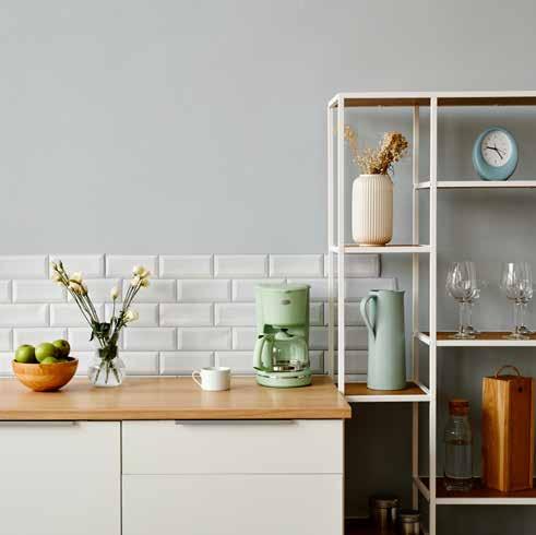 • Wash walls with an all-purpose cleaning solution. Touch up mars and chips with paint.