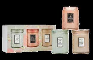 Voluspa Small Jar Candle Trio includes French Cade Lavender, Kalahari Watermelon and Jasmine Midnight Blooms for a wave spring freshness throughout your home.