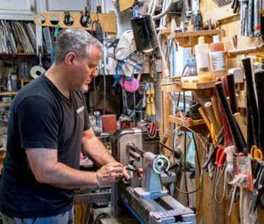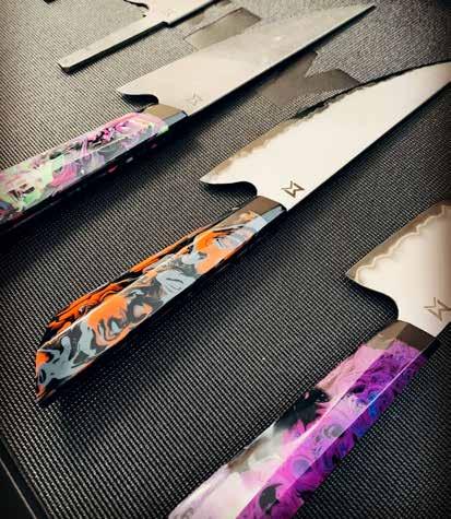 Customers primarily find Meadows Knives through Instagram. After contacting Meadows, they are able to choose their preferred metal, color, handle and more. Each knife is custom and commissioned. “I give them options on metals and materials, and we sketch out what the knife will look like, maybe four or five sketches, and I ask if any speak to them,” he says. “Then I source the metal, wood, resin and build it in my shop. I cut a chunk of the metal and hammer it into the shape of the knife. Then it’s in the forge at 1,500 degrees, then it goes on an anvil to make its shape. It’s tedious — it’s about 20 to 30 hours per knife, all done by hand.”Visit facebook.com/meadowsknives or @meadowsknives on Instagram.