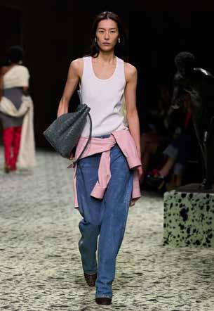 Style inspiration from the Bottega Veneta runway. Photo courtesy of Bottega Veneta. Favorite Daughter Simon Coat (shown in petite). Shopfavoritedaughter.com. Favorite Daughter Ex-Boyfriend Shirt (shown with the Ollie Ultimate Baggy Wide Leg). Shopfavoritedaughter.com.“I’ve always wanted to do fashion, but it was always evolving, like a kid with a blank palette, drawing my way through it.” — Rachel Schostak