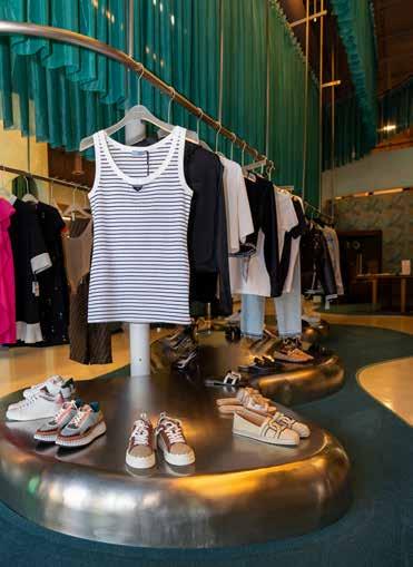 There are some higher-end items sideby-side with pieces from Zara and Target. “I think that’s the way people shop,” she says. “They might splurge on a high-end item and mix in basics from the Gap.”