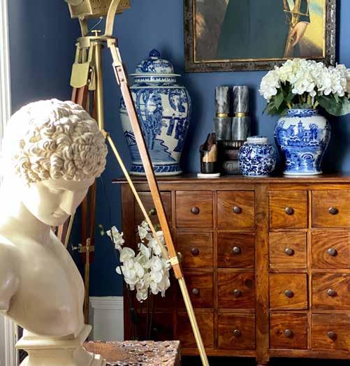 busts, and paintings of horses. Miller created an Instagram account @sunny_in_suffolk to share the renovation process. She continued to sell her estate and auction finds to a captive and growing audience. When the pandemic lockdowns hit, along with lead time increases and a focus on one’s home environment, Miller’s fledgling business–Relic Interiors–was properly launched.
