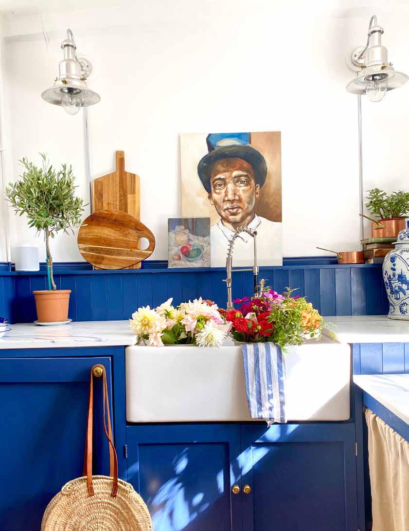 A few years later, Miller and her now husband, Ben, purchased their dream fixer-upper–a 17th-century former malt house–in a picturesque village outside Bury St Edmunds in the English countryside. The new home provided ample space for an ever-growing collection of blue and white porcelain, tapestries,