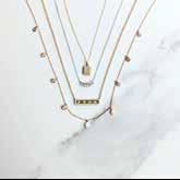 Layering adds instant polish. Mix gold tones, a floating diamond station, a centered pendant, and something playful like a charm or gemstone to create depth, interest, and everyday elegance.