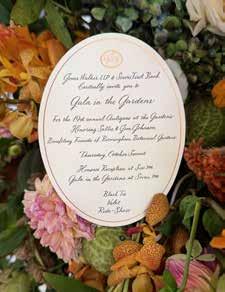 Grace felt honored when Antiques in the Gardens asked her to create this year’s gala invitation, and she expected to lean on her familiar forms. Instead, they presented an 1800s writing sample: angular, crisp, nothing like her wedding scripts. “It couldn’t have been further from my work,” she says. They wanted a hand reminiscent of a foxhunting invitation.