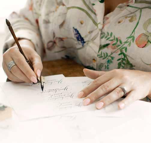 Her heart still belongs to the projects that ignited her passion. “Invitations are the first impression your guests are getting of your event,” she says. “When someone sees their name written beautifully amidst a stack of bills, it tells them they’re treasured. It tells them someone is looking forward to their presence.” Being chosen to create those first impressions—by a bride, a committee, a family—“is never lost on me.”