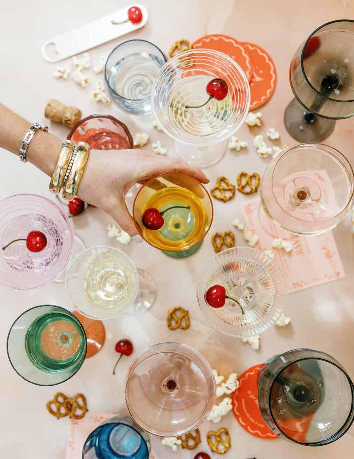 Paper goods, once an afterthought, are becoming keepsakes—die-cut, tactile, often layered with unexpected elements. Invitations arrive less like mail and more like gifts. A recent 30th birthday invite included the makings of a Miami Vice cocktail— setting the tone for an epic 30-person extravaganza.