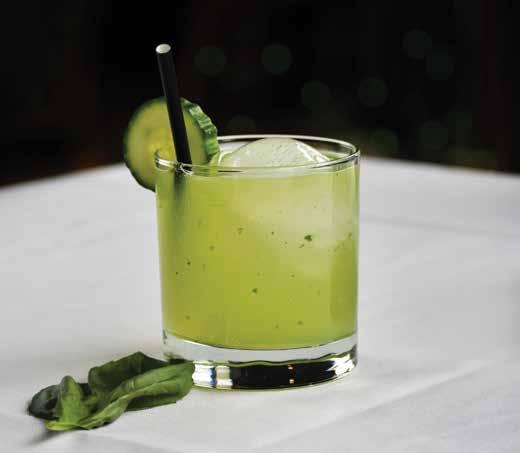• Top with tonic water and garnish with basil leaf and a cucumber slice