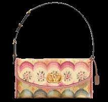 Stunning: Valentino Garavani’s DeVain Small Shoulder Bag in jacquard fabric in an Apres L’Hiver motif, metallic logo and grainy calfskin details. Saks Fifth Ave., the Somerset Collection, Troy; saksfifthavenue.com.