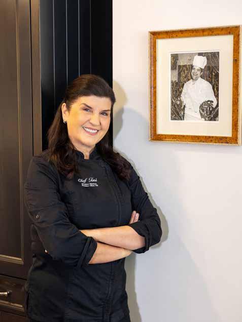 Her menus honor her roots — Mitch’s famous ribs, handmade breads and Greek salad — while embracing modern sensibilities. She’s known for her lamb chops, truffle-kissed dishes and her specialty soups: lemon rice with a clear broth, roasted tomato bisque, butternut squash. “Whatever’s in season, whatever’s at the farmer’s market goes into the soup pot,” Sova says. She also travels often — including to Greece — for inspiration.