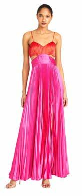 Pleats, cutouts, juicy colors: Amur’s Elodie Satin Color-Block Gown, made with recycled polyester from PET water bottles. Saks Fifth Ave., Somerset Collection, Troy; saks.com.