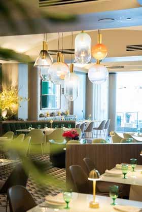 The flashy, splashy RH Yountville is hard to miss as it takes up nearly a full block along Yountville’s ultra-walkable downtown. The Restoration Hardwareowned property is a wine, food, and shopping mecca comprised of five separate experiences—an indoor/ outdoor restaurant with a glass roof surrounded by 100-year-old olive trees and adorned with dramatic crystal chandeliers; a two-story wine-tasting space with its own share of crystal chandeliers and a sleek limestone bar; a limited-production wine center; an espresso bar; and a boutique design gallery grander in scale than even its ever-so-lavish sister property at the Scottsdale Quarter in Scottsdale.