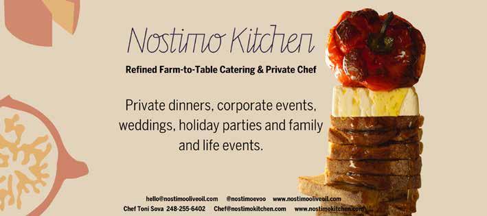 Nostimo Kitchen is deeply personal. Sova describes herself as “Greek heritage, French-trained and farm-to-table focused.” She hits the farmers’ markets — Birmingham, Royal Oak, Ann Arbor — every day they’re open, sourcing the season’s best. Winter brings menus and tables featuring pomegranates and blood oranges; spring brings peas, dandelion greens and the most beautiful artichokes she can find, sometimes directly from California farms.