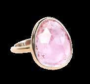 Handmade with a yellow-gold band, this Pink Tourmaline Elizabeth Stone Ring is wrapped in 14K gold. Zieben Mare, Franklin; ziebenmare.com.