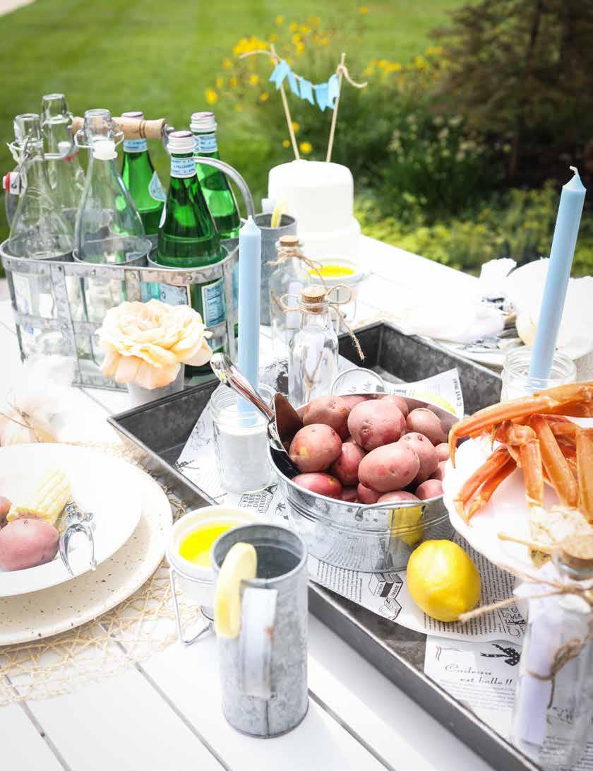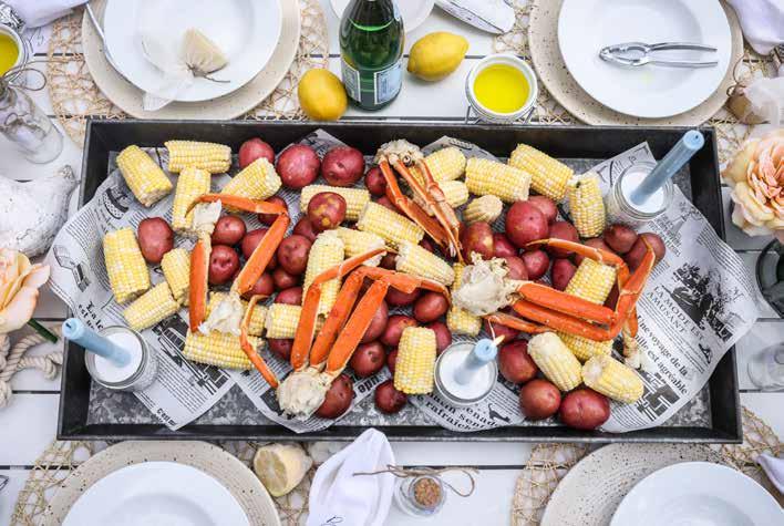 legs, sausage, potatoes and corn until cooked. Strain water and serve on a large galvanized tray, newspaper or parchment paper — enjoy with guests, family style. For fresh crab legs, head to Papa Joe’s Market or Plum Market, both in Bloomfield Hills; or you can carry-out readyto-eat from Hazel’s in Birmingham or Joe Muer Seafood in Bloomfield Hills.