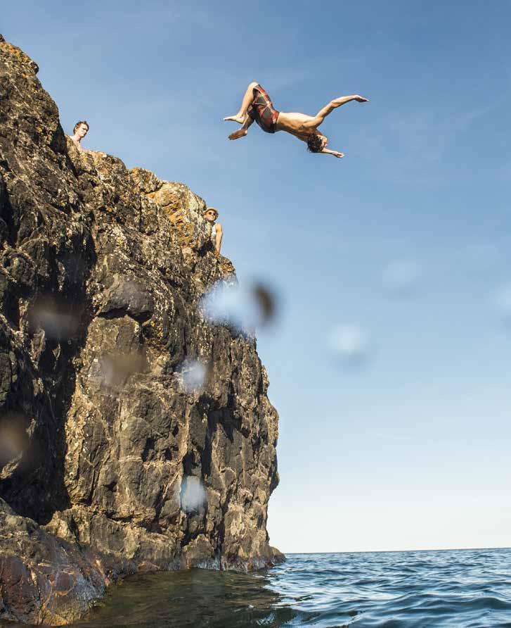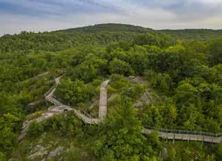 Named after French Jesuit missionary and explorer Jacques Marquette, the village of Marquette was established in 1849, and is today home to Northern Michigan University and was the film location for Otto Preminger’s 1959 movie, Anatomy of a Murder (starring James Stewart and Lee Remick), based on an actual shooting at a local bar in Big Bay. In addition to its natural surroundings, Marquette’s charming and historic downtown is a destination for peak shopping, dining, local award-winning craft breweries and inns for unwinding and trading tales of your day’s adventures. It also pays homage to the rich mineral deposits, dense forests and maritime markers that have helped to shape its history.Below, a few notto-miss itineraries and the summer’s festival lineup. For more details, info, trail maps and more, visit travelmarquette.com