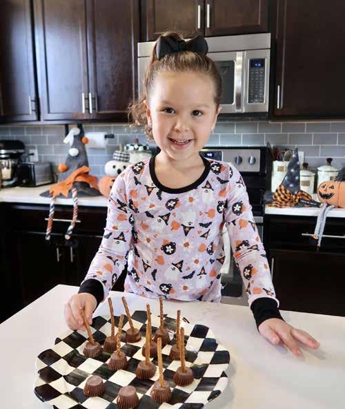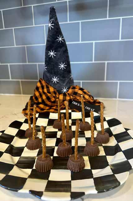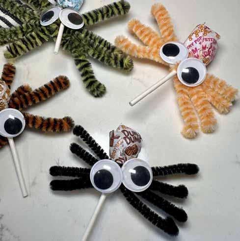 At our house, we made “Scary Spider Pops” and “Wicked Witch’s Brooms.” The “Scary Spider Pops” make perfect treats to pass out for Halloween since they stay wrapped. These are great for trickor-treating, classroom exchanges, or Halloween gift basket trading with friends. The “Wicked Witch’s Brooms” are wonderful for Halloween parties, or just a fun after-dinner dessert for the family during the month of October. I hope you have as much fun as we did making these simple spooky treats!