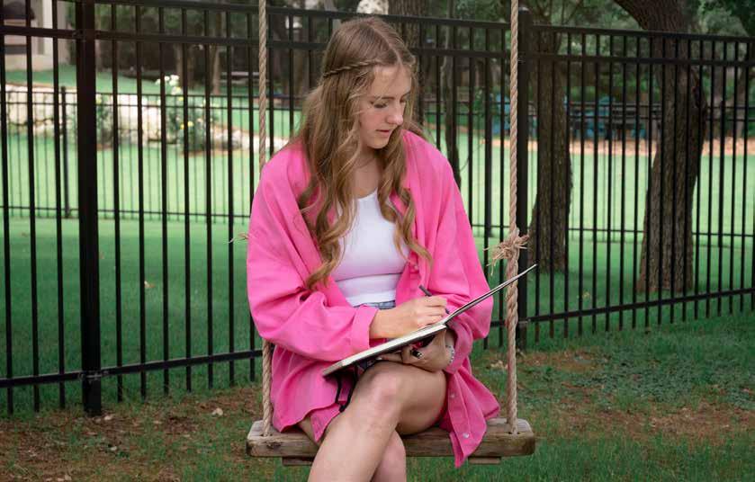begins to work on a piece, but the inspiration may come from anywhere. “Being able to take something you see in the world and make something new out of it is just really cool to me.” For one composition entitled “The Gardener,” she says she wanted to relate a story she heard at church about God pruning and shaping us out of love. The model for the gardener though? “We were on a field trip at an art museum, and I just took a random picture of a guy looking at a painting,” she says with a laugh.