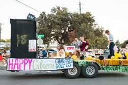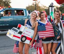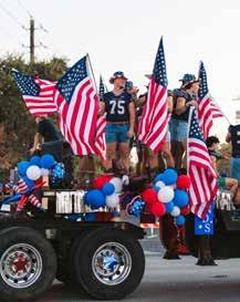 1: The varsity theater program dressed up and sang songs from the hit Broadway musical Hamilton 2: Champion Chargers golf team was driving spirit down the parade route! 3: CHS varsity soccer team looked glamorous on their Hollywood float. 4: Cheerleaders chanted up and down Blanco Rd. while passing out candy and interacting with the crowd. 5: Trinity dressed up as a real-life princess for the parade. 6: This year’s theme, “American Nights,” brought patriotism to the parade route. 7: The varsity football players showed love for their school and country.