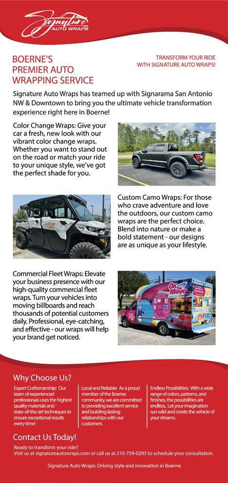 Tee off at the Boerne Chamber’s Annual Golf Classic, presented by Cavender Chevrolet. Held at Tapatio Springs Hill Country Resort, the tournament features a 9 a.m. shotgun start, player perks, food and drinks, and networking opportunities. An awards ceremony and happy hour follow the round. To learn more and sign up, go to the Chamber’s website at boerne.org