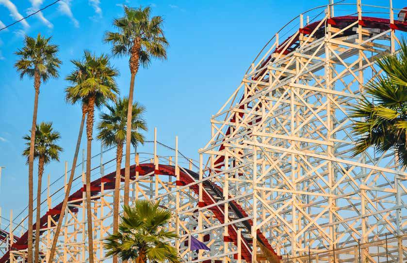 Stroll past the wharf to one of the last seaside amusement parks on the west coast of the United States, the Santa Cruz Beach Boardwalk. The Boardwalk has been open since 1907, making it the oldest amusement park in California. In 1911, Charles I.D. Looff delivered a new merrygo-round with hand-carved horses to the Boardwalk. The red and white wooden Giant Dipper roller coaster, built in 1924, is the fourth oldest coaster in the U.S. Both the Giant Dipper and Looff Carousel are National Historic Landmarks and the entire Boardwalk property is a California