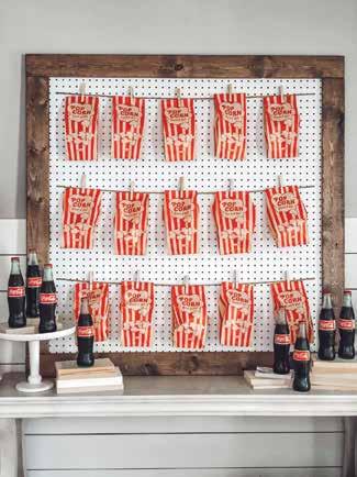 • Twine to string popcorn bags. Or, if you’re using the pegboard display for donuts, bagels or pretzels then use golf tees hot glued into holes from behind!