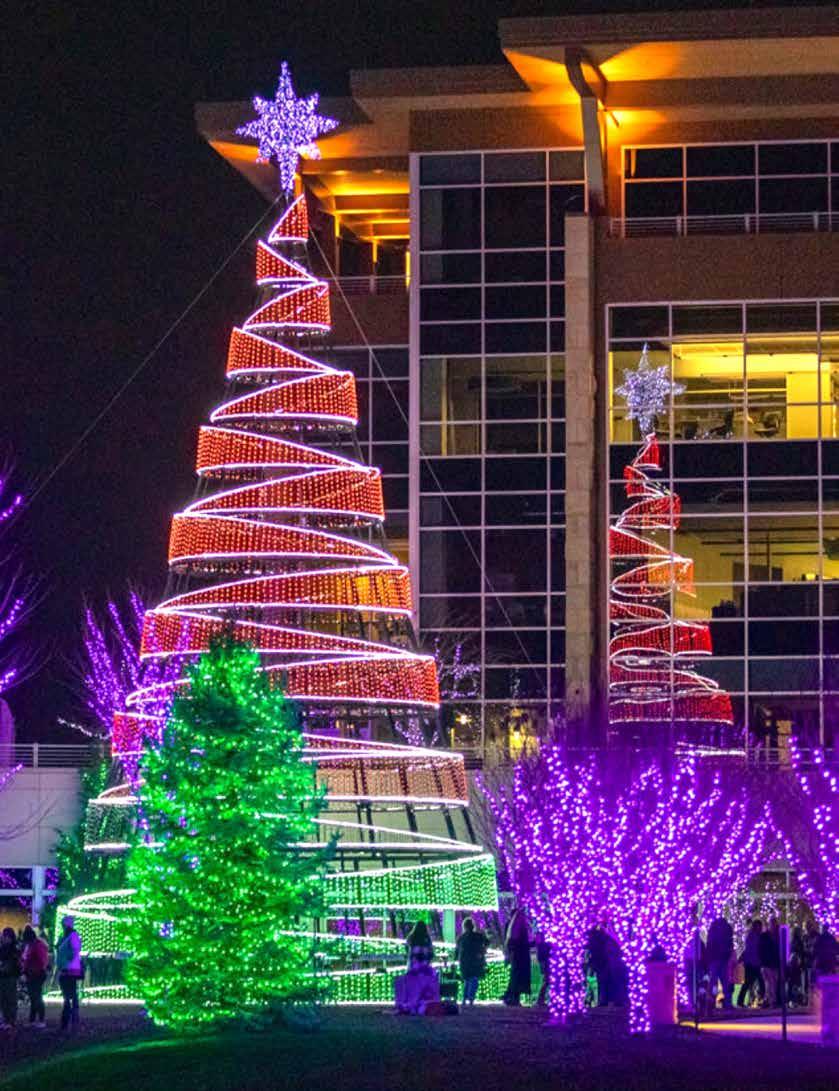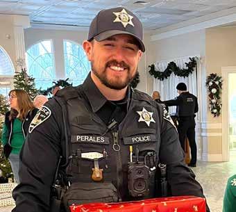 hospital grounds into a dazzling display of color. As more than a dozen local agencies gather outside the hospital, the night sky fills with flashing red and blue lights, forming a choreographed fifteen-minute light show. Before the show begins, Boise Police officers join Mr. and Mrs. Claus to deliver gifts to the young patients and their families.