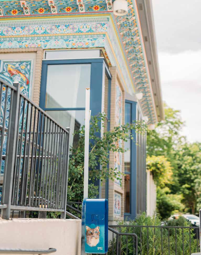 Cedar & Hyde for hidden works. End up at Lolita’s and look for the artist’s rendering of a sweet fox and its cub,