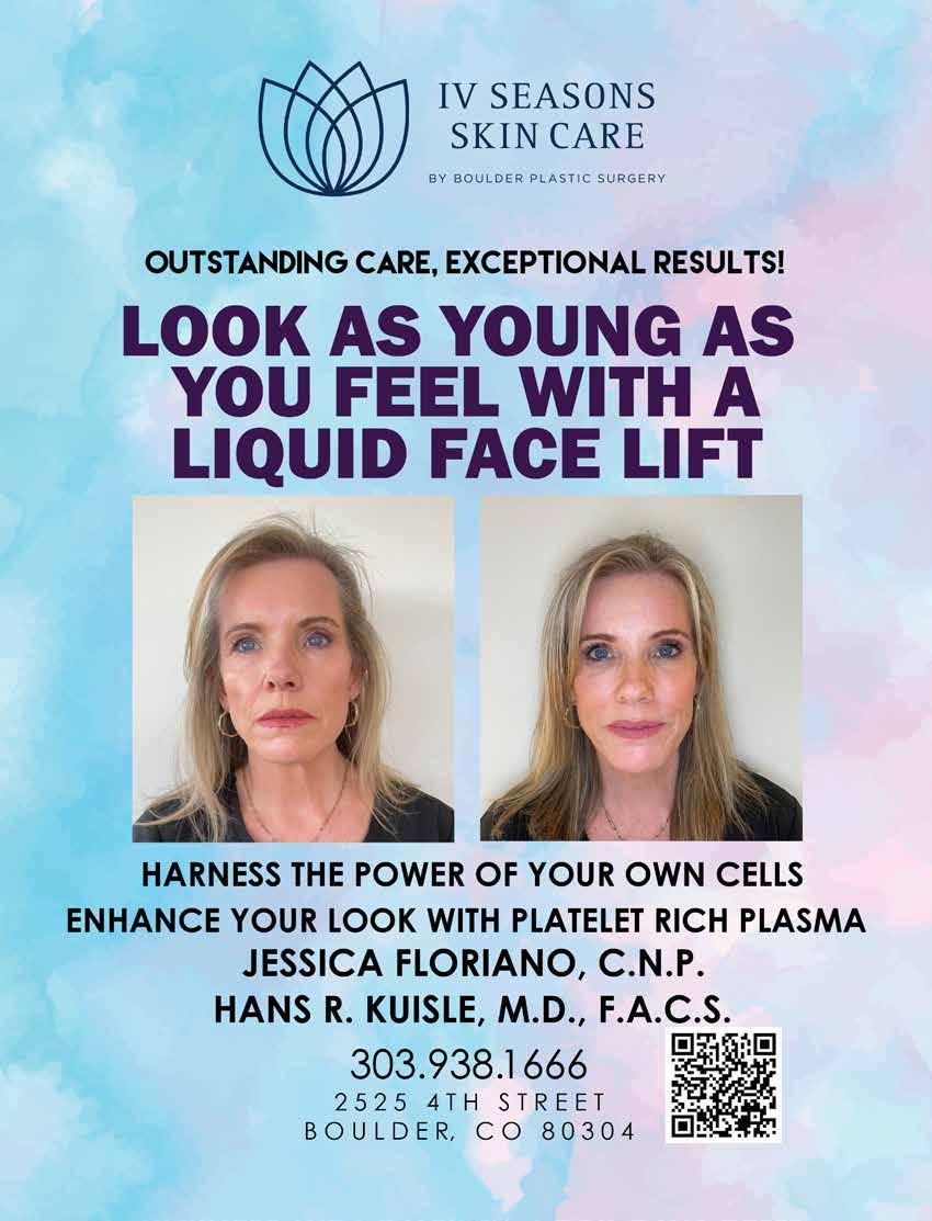 2490 Junction Pl #102 • vasuskinsolutions.com Enjoy 15% off all packages at Vasu Skin Solutions when you mention this ad! Call Vasu today at 720.323.4942 and learn more! Shop Local This Summer!