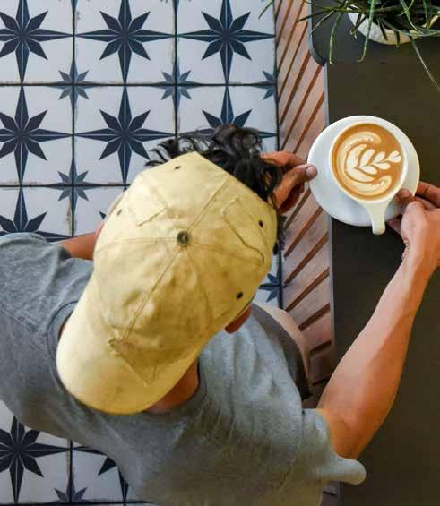 award-winning specialty coffee roaster in the country—as the ongoing house roaster, while having two additional rotating roasters on the lineup, making them a multi-roaster coffee shop. Most coffee enthusiasts probably know what that is, but as a begrudgingly coffee avoider, John broke it down for me: “Being a multiroaster concept means that we don’t serve just one roaster here, rather we offer three different roasters, each with their own unique approach to sourcing and roasting,” he explains. “Some roast to maximize the natural sweetness in coffee, some accentuate the sparkling natural fruit acids that make a cup pop. One roaster may source coffees that are more chocolatey, nutty and approachable while another may seek out fruity, floral or funky offerings.”