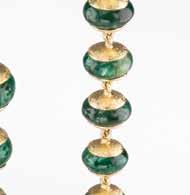 placed in boxes lined with red velvet. A swallow necklace rests in an actual bird’s nest, still holding delicate plumes.