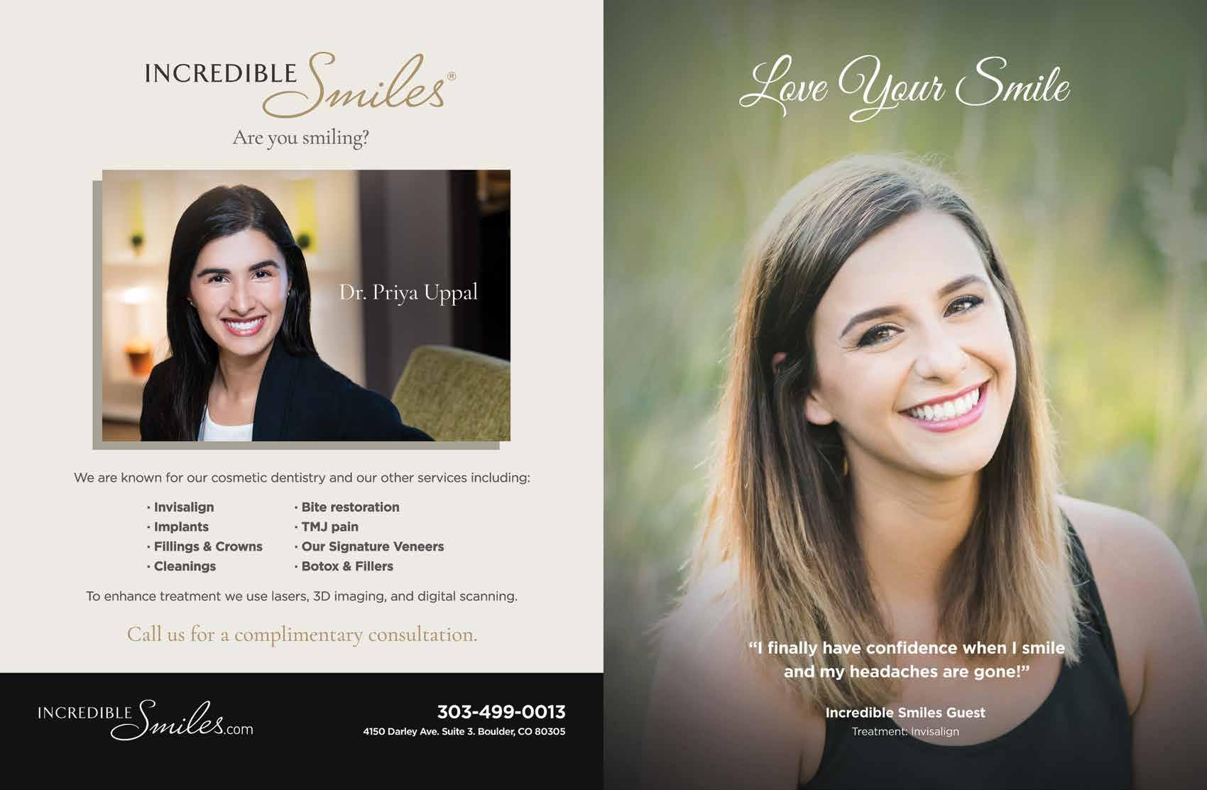 Learn how to start your own publication at: citylifestyle.com/franchise CITYLIFESTYLE.COM/BOULDER | Boulder Lifestyle™ is published monthly by Lifestyle Publications LLC. It is distributed via the US Postal Service to some of the Boulder area’s most affluent neighborhoods. Articles and advertisements do not necessarily reflect Lifestyle Publications’ opinions. No portion of this magazine may be reproduced in any form without written consent. Lifestyle Publications does not assume responsibility for statements made by advertisers or editorial contributors. Information in Boulder Lifestyle™ is gathered from sources considered to be reliable, but the accuracy of all information cannot be guaranteed. 20