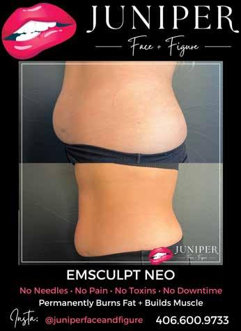 Juniper has a variety of popular services such as non-surgical facelifts called EMFACE. Juniper is the first in Montana to offer that service. These involve no needles, no downtime, no pain, and no toxins. Dermal filler treatments include under eye filler, chin enhancement for profile balancing, natural lip fillers, and more. A treatment called EMSCULPT NEO permanently burns fat and builds muscle simultaneously. Juniper also offers Kybella Kybelia which permanently dissolves a double chin.