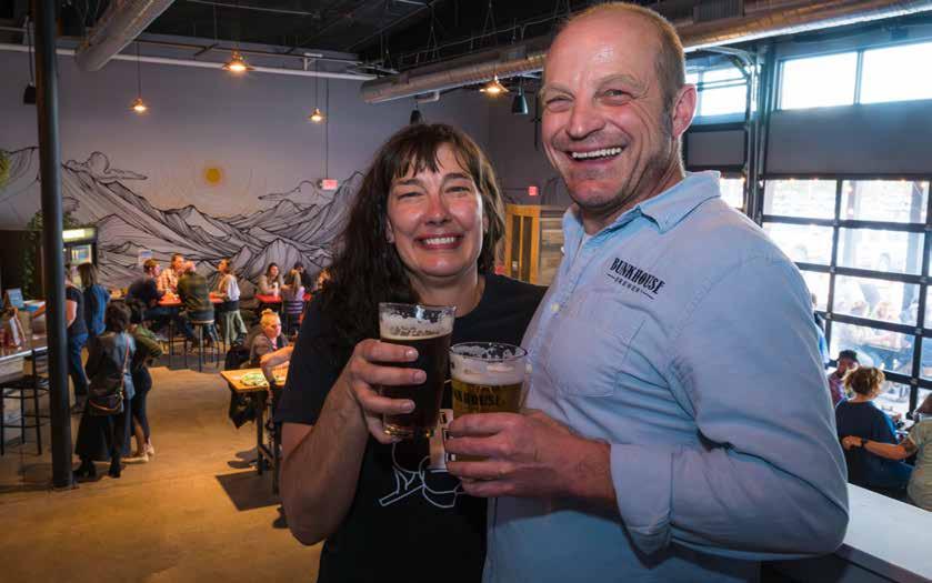 Fortunately, the Bunkhouses you will find in Bozeman are much more jovial places. Tucked between MSU’s Alumni Foundation and Jimmy John’s, at 1216 West Lincoln Street, the first of the two Bunkhouse Breweries opened in 2015. A second location opened at 7715 Shedhorn Drive in Four Corners in early 2022. Serving anywhere from eight to 14 beers, Bunkhouse Brewery has grown into a local favorite, where owners Andy and Beth Stohlmann can often be found pouring beer for customers themselves.