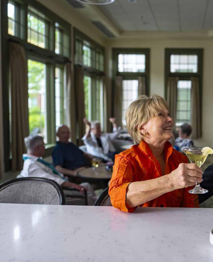 While viewing these centerpieces, residents can indulge in exceptional food and beverages. “Residents enjoy both fine and casual dining options, with menus that offer a wide variety of dishes and rotate bi-weekly,” says Tyler Moore, manager of restaurant operations. “We also host special dining events to celebrate every holiday, adding variety and excitement to the experience.”