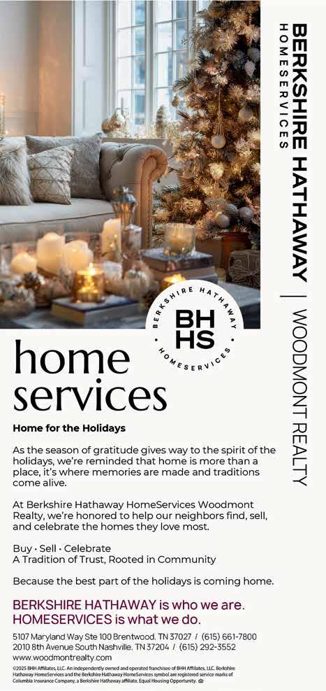 Kick off this holiday season in style and see why so many call Traditions of Mill Creek home! Enjoy a chef-prepared holiday brunch, festive drinks, a mimosa bar, pictures with Santa, live entertainment, and prizes. Tours will be available. The event will be on Sunday, Dec. 7, from 1-3 p.m. 7110 Southpoint Pkwy | Brentwood, TN 37027 | RSVP BY Dec. 4 to 615-3753550 or LSpoon@TraditionsSL.com