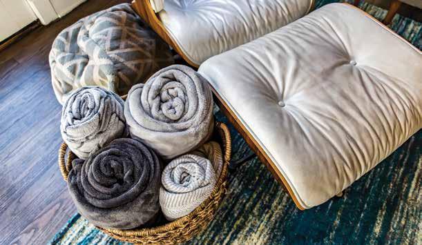 • Replace seasonal decor—bring in fresh flowers, soft pastels and airy textures.