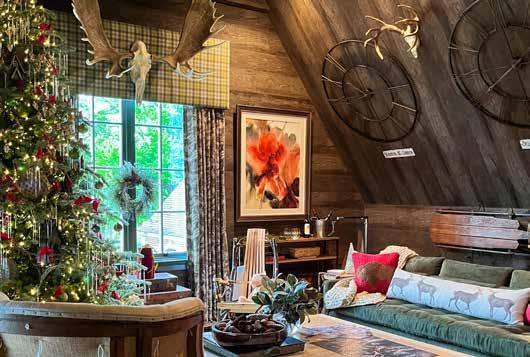 After visitors tour the grounds, they cast a vote for their favorite interior and landscape design. The winners in each category receive the Tulip Award, the event’s highest honor. “Moor and Mountain,” designed by Sam Ciardi of Samuel Robert Signature Spaces, won for interior design. Ciardi says the design for the rustic but regal retreat was inspired by a desire to create a space in which people could come in from the cold, curl up by the fireplace and enjoy the holiday in a majestic, yet cozy, cabin.