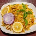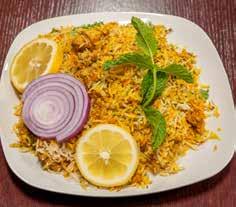 Singh continues to expand on and improve his food. “I’m still trying to copy my mom,” he says as we review the varied menu options. With chicken and lamb curries, vegetarian and vegan dishes, and seafood options—many of which are gluten-free—there is something for everyone in the family to enjoy. Try the popular Tandoori Chicken—or make Singh’s recipe at home. Other crowd favorites include the Biryani specialties with vegetable, chicken or lamb.