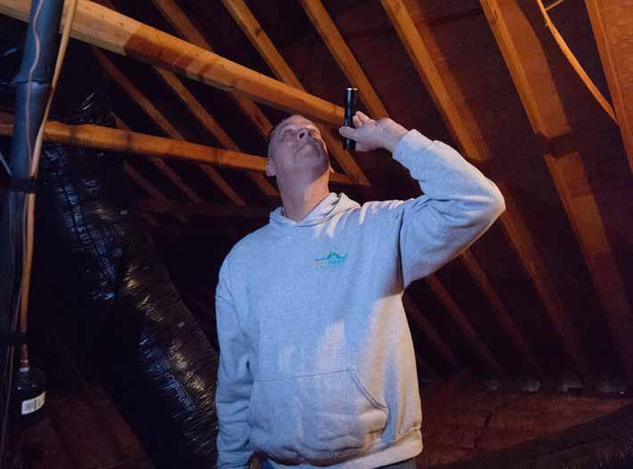 your walls? Only a third of the time is this from water. The other two-thirds is from mice. We inspect so you can call an exterminator before they burrow and get into your walls and ceilings,” he says.