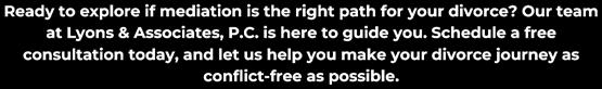 Mediation is a cooperative process that gives spouses control over their own divorce proceedings A neutral third-party mediator identifies issues and guides private, confidential discussions and negotiations The process is typically quicker and saves time and money without stepping foot into a courtroom