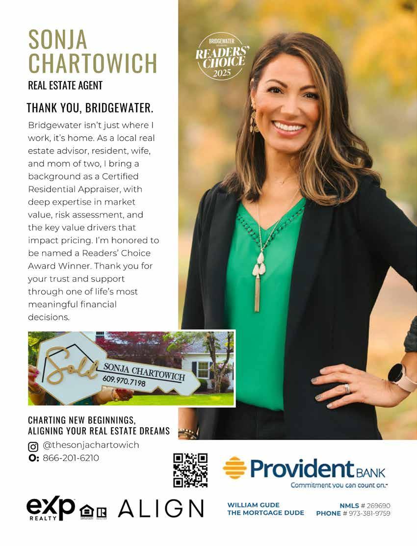 And finally, don’t miss our Readers’ Choice voting from Bridgewater residents. This month, we highlight winners in the categories of Best Summer Camp, Best Jeweler, Best Private School, Best Real Estate Agent, and Best Fine Dining Restaurant. Turn to page 14 to see who stood out, and follow @bridgewater_somerset_hills to take part in future Readers’ Choice voting.
