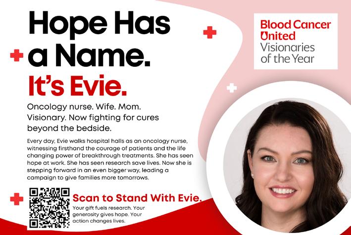 Evie Hughes wears many hats: mom, wife, friend, oncology nurse & relentless advocate; she has dedicated her life caring for others and witnessing incredible bravery and resilience in the face of blood cancer every day. Inspired by the families she serves and the hope she believes in, she is stepping forward as a Visionaries of the Year candidate with Blood Cancer United (formerly LLS). Her journey begins May 9, 2026. Scan to learn more and share in her mission of hope.
