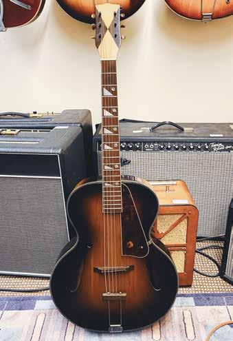 To pick and strum along with history, play the Recording King M by Regal, a company that manufactured guitars for Montgomery Ward stores in the late 1930s. Constructed of maple, mahogany, and Brazilian rosewood, this guitar has aged like a fine wine and produces a warm sound nearly impossible to achieve with a brand-new model.