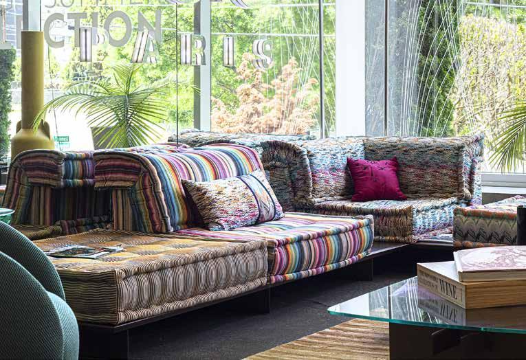 The Caractere sofa is original and generous, with its simple and effective design, careful finishing, easy-to-use manual mechanism, exceptional fabric that is bright and very soft to the touch, and incredible modularity. This model is also highly customizable, with many elements available, a large choice of upholstery options, and the possibility to adjust the height of the backrest. CONTINUED